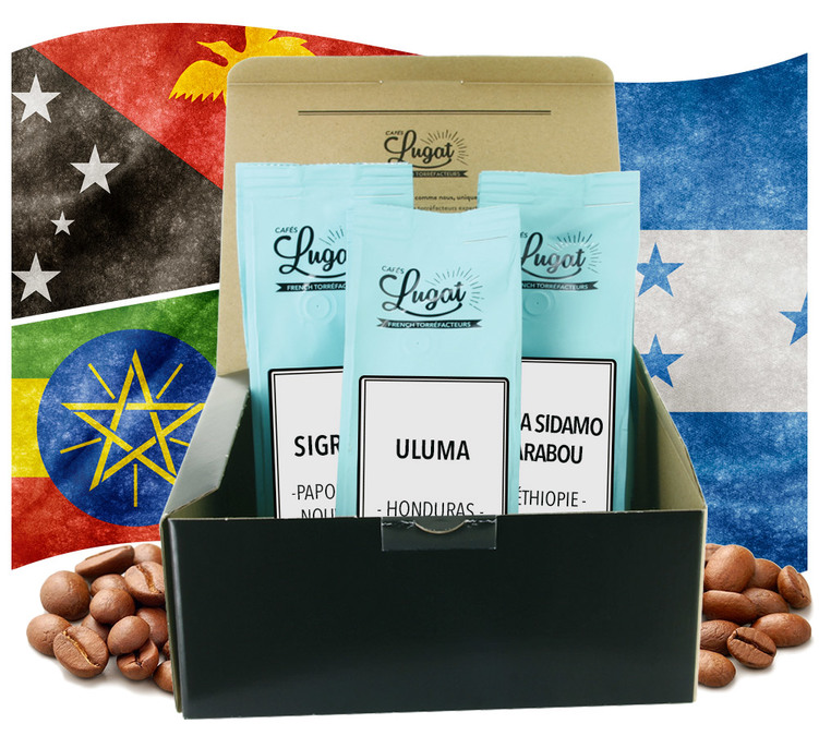 | Coffret Tour du monde - 3 cafés grains x 250g - Cafés Lugat | |