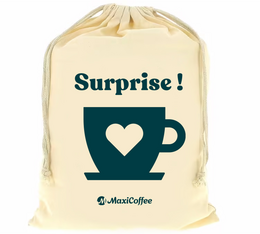 Fini les emballages cadeau à usage unique qui finissent à la poubelle ! Offrez vos cadeaux dans un superbe pochon cadeaux signé MaxiCoffee. Il s’agit d’une excellente alternative écologique aux papiers cadeaux : ils sont en coton 100% recyclable couleur lin avec de magnifiques illustrations aux couleurs de MaxiCoffee.