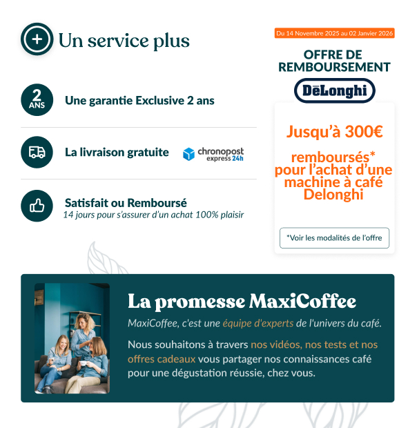 | Boissons réalisables | Americano, Boissons froides, Café au Lait, Cappuccino, Carafe de café, Cortado, Doppio, Eau chaude, Expresso, Espresso Macchiato, Flat White, Lait Chaud, Latte Macchiato, Véritable Cappuccino |