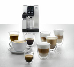 Une très grande gamme de boissons avec quelques nouveautés venues des quatre coins de l'Europe. La machine à café à grain DeLonghi Dinamica Plus réalise les classiques comme l'expresso, le cappuccino, le latte macchiato. L'expresso broyeur surprend aussi avec des boissons Galão et Verlängerter qui feront voyager au Portugal et en Autriche. De plus, la dernière version Dinamica Plus propose le café glacé, cette boisson rafraichissante est idéale à l'arrivée des beaux jours.