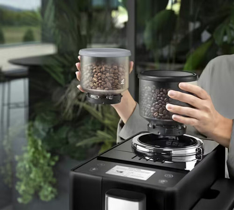 Cette innovation a valu à la machine le Grand Prix de l’Innovation d’Or à la Foire de Paris. Une technologie astucieuse prend même en charge les 10 g de grains restants lors du changement de bac : vous pouvez soit les utiliser pour une dernière tasse, soit les purger, soit les mélanger au nouveau café pour une transition en douceur. Idéal pour s’adapter aux goûts variés d’un foyer ou à vos envies tout au long de la journée.