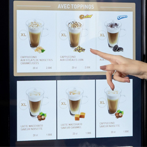 Avec sa carte très lisible et au design soigné, l’écran lui permet de choisir sa boisson en toute simplicité et facilite l’utilisation de la machine .
