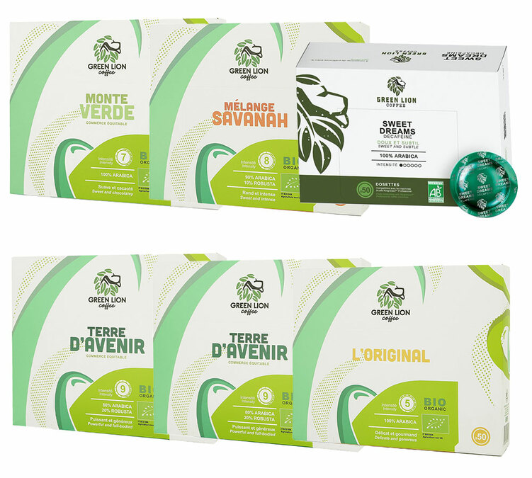 | Pack Découverte Bio 300 capsules compatibles Nespresso* Pro – GREEN LION COFFEE | |