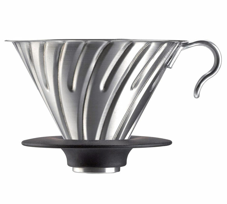 Le Dripper Hario V60 VDM-02 est en acier inoxydable avec un support en silicone. Il vous permettra de de redécouvrir le café filtre manuel. Pour deux à quatre tasses.