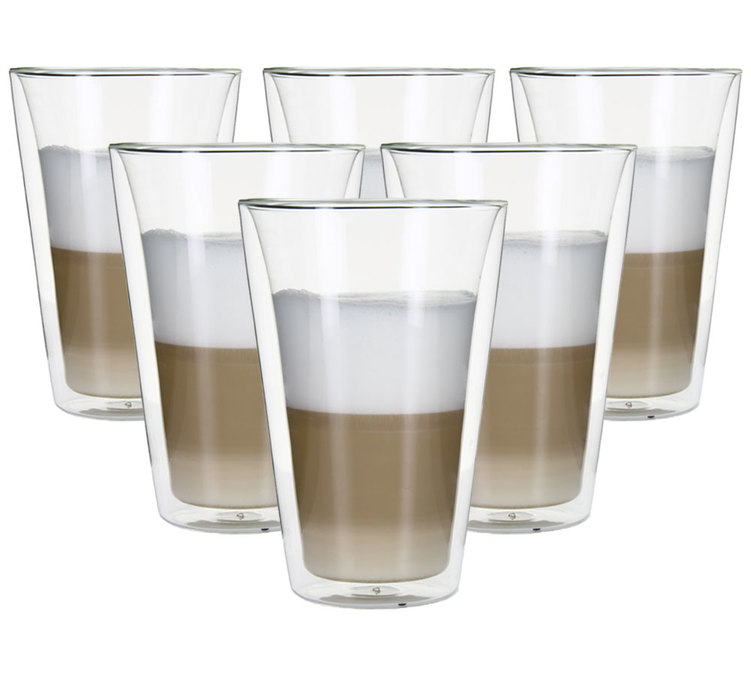 A set of 6 double wall glasses, especially designed for latte macchiato by Bodum®. 40cl capacity.