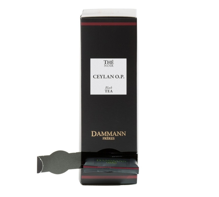 Ceylon O.P tea perfect for a "light" breakfast. This box from Dammann Frères contains 24 individually-wrapped Cristal® sachets