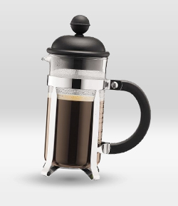 The Bodum Caffettiera French Press has a capacity for 3 cups or 350ml. A classic design with stainless steel and chrome-plated steel legs to protect your surfaces from the heat. Borosilicate glass jug. Available in many lovely colours!