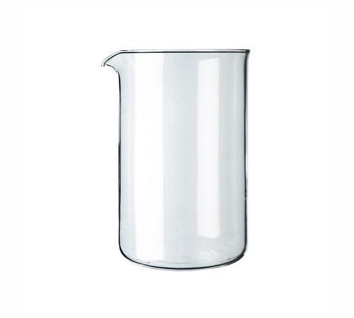 A spare glass beaker for 12-cup (1.5 litre) BODUM French Press coffee maker. This spare Bodum glass beaker is suitable for all BODUM 12-cup French Press coffee makers, except the "New Chambord" and double wall coffee makers.