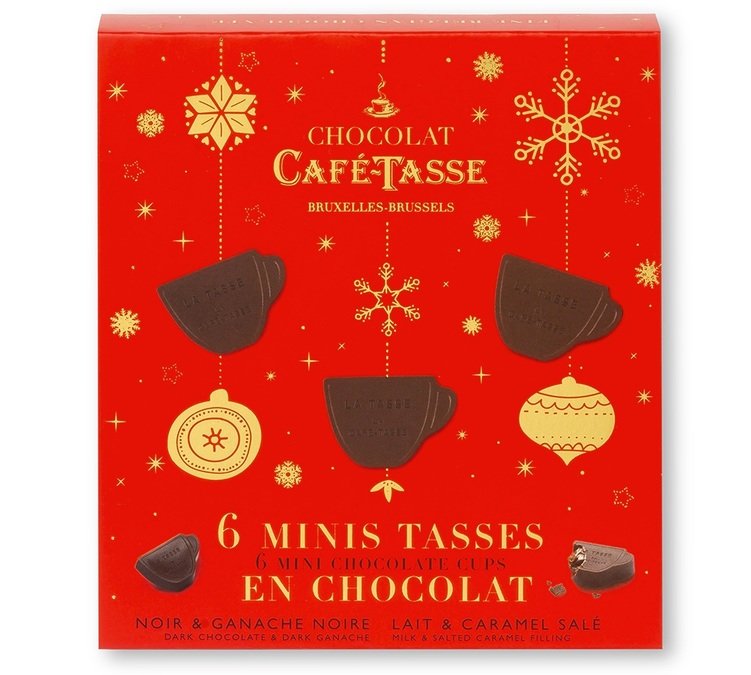 Café Tasse Christmas Gift Box of 6 Chocolate Cups - 60g