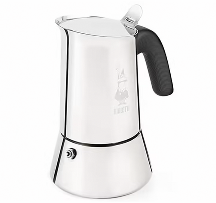 The Bialetti Venus induction moka pot charms with its smooth, elegant lines. It has been designed to be pleasant to use every day. Its anti-drip spout is combined with a delicate handle, making it easy to hold and pour your coffee. This is a model of moka pot compatible with induction. The main difference compared to other moka pots lies in its new boiler. Its thickness has been increased by 20% to provide additional strength and safety.