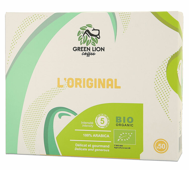 Enjoy a coffee with subtle notes of toast and caramel. L'Original by Green Lion Coffee is produced using organic farming methods. This pod is compatible with all Nespresso* Professional machines. This 100% Arabica coffee is mild thanks to its medium roast, which enhances a woody finish. Green Lion Coffee Original is perfect for breakfast or to round off lunch.