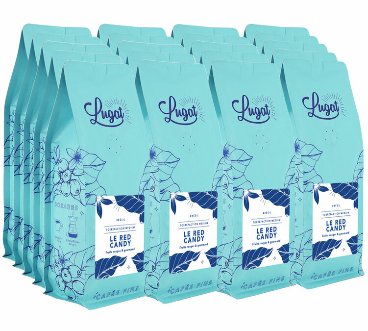 This Red Candy coffee bean is a 100% Arabica blend from Brazil specially blended and roasted by the Lugat Coffee roasting team to produce a quality espresso. This blend will offer you notes of chocolate and red fruits. Medium roast specially designed to make good espressos. Packaging: 20 x 250g.