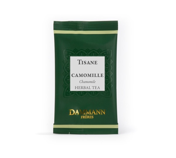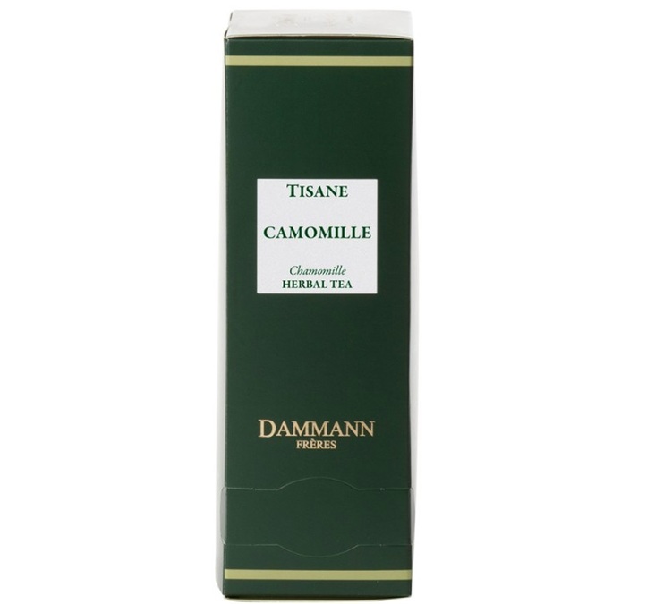 Chamomile herbal tea that produces sweet and floral flavours with a slight hint of bitterness. 21 individually-wrapped sachets in a box by Dammann Frères.