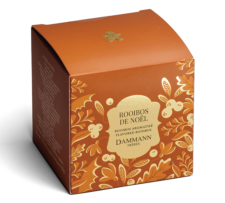 Discover Dammann's Christmas rooibos with delicious notes of orange and gingerbread combined with notes of ginger, clove and pink berry in an festive infusion. 25 Cristal® sachets.