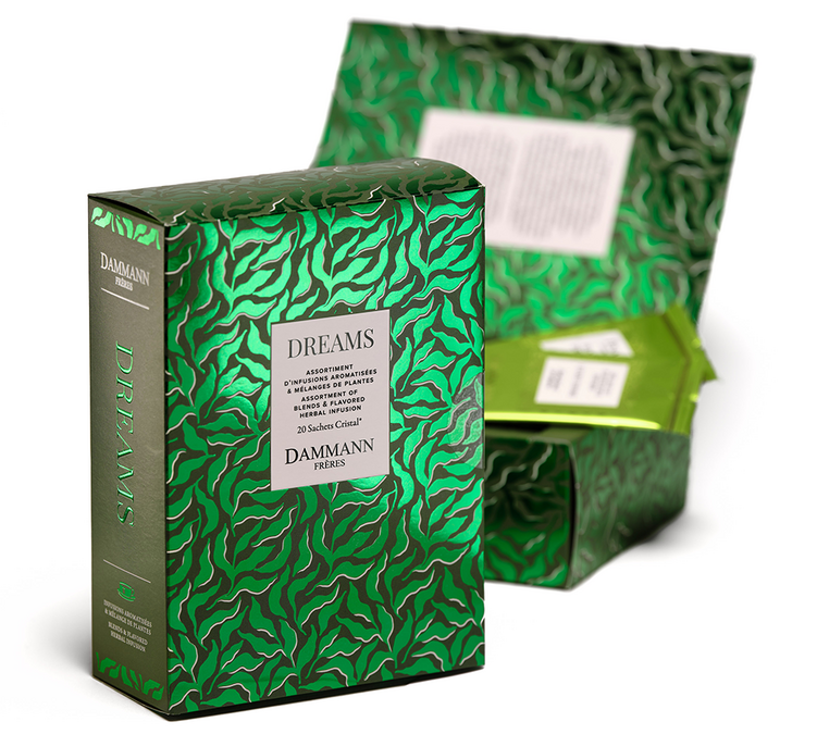 Plants, pieces of fruit, spices and flower petals blend together to create warm, comforting drinks. Discover five of the finest recipes for aromatic plant blends (herbal teas and infusions) in this Dammann Frères Dreams box set containing 20 individually wrapped tea bags.