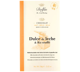 Return to childhood with this delicious 70g tablet of milk chocolate, with dulce de leche or dulce de leche, and puffed rice from Dolfin. The Belgian master chocolatier makes us melt with pleasure with a unique recipe that will appeal to young and old alike.
