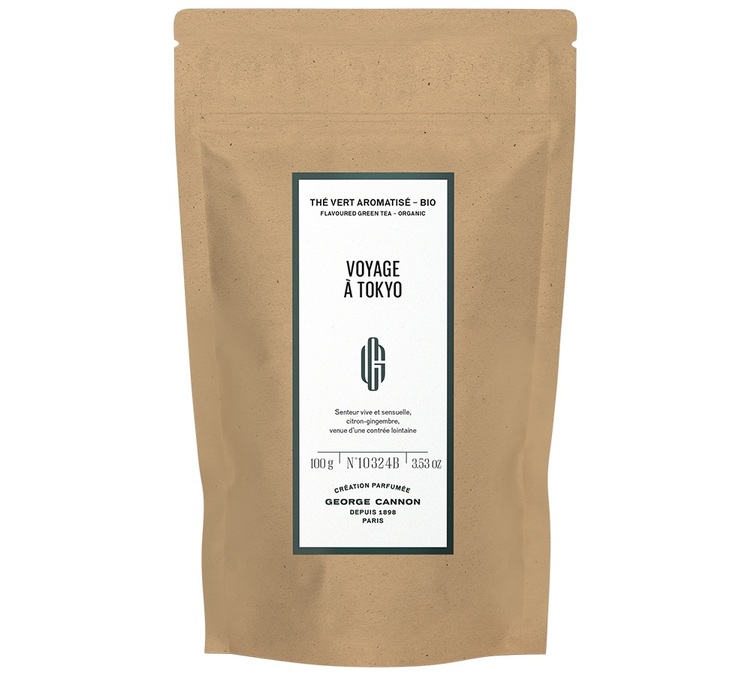 "Voyage à Tokyo" by George Cannon is an organic green tea delicately perfumed with lemon and ginger. A tea that will take you on a journey to exotic places! 100g loose leaf tea