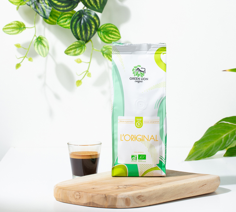 Let yourself be seduced once again by the perfect balance of L'Original, Green Lion Coffee's organic coffee beans. This spicy blend with notes of yellow fruit combines Arabica beans from Honduras and Ethiopia, offering delicious aromas of toast, caramel and candied orange. Rich and delicate, it reveals its full richness in espresso. Its 1 kg format will quickly become a must-have: an organic coffee offering the best value for money, with free delivery to satisfy your passion for coffee or welcome your guests in style.
