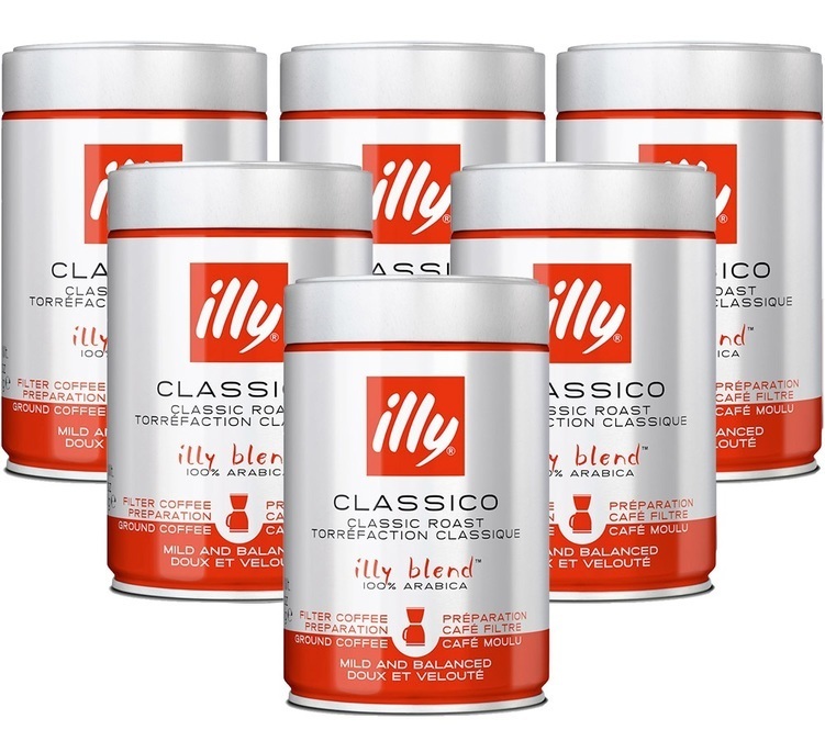Illy Classico Ground Coffee (for drip filter coffee) - 6 x 250g tin