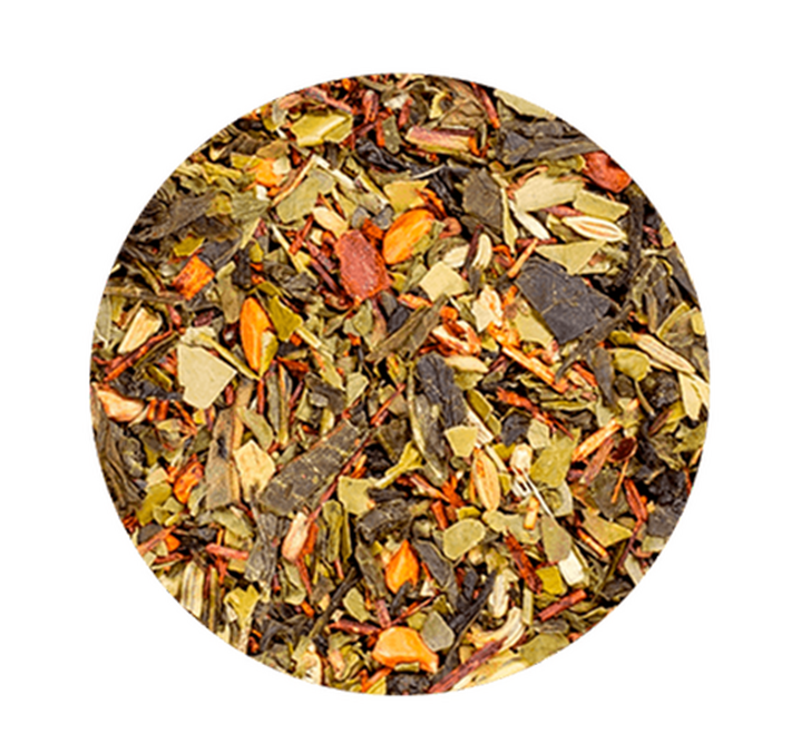 Green tea (30%), rosehip, maté (17%), rooibos, fennel, mint, grapefruit flavoring, flavorings, guarana seeds, dandelion