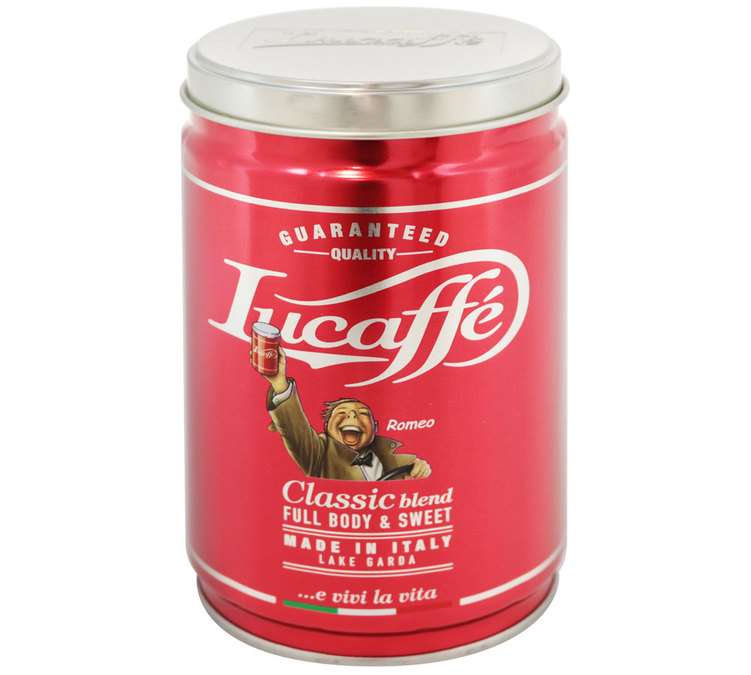 Lucaffè 'Classic' Italian coffee beans: perhaps the most famous coffee in Italy! It is known for hitting just the right intensity! 80% Arabica & 20% Robusta. For a very strong authentic Italian espresso. 250g coffee beans in special tin.