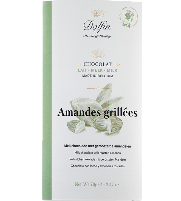 This bar of milk chocolate with 38% cocoa and roasted almonds is a real treat! Master chocolatier Dolfin has combined these two ingredients in a 70g bar that can be enjoyed at any time of day!