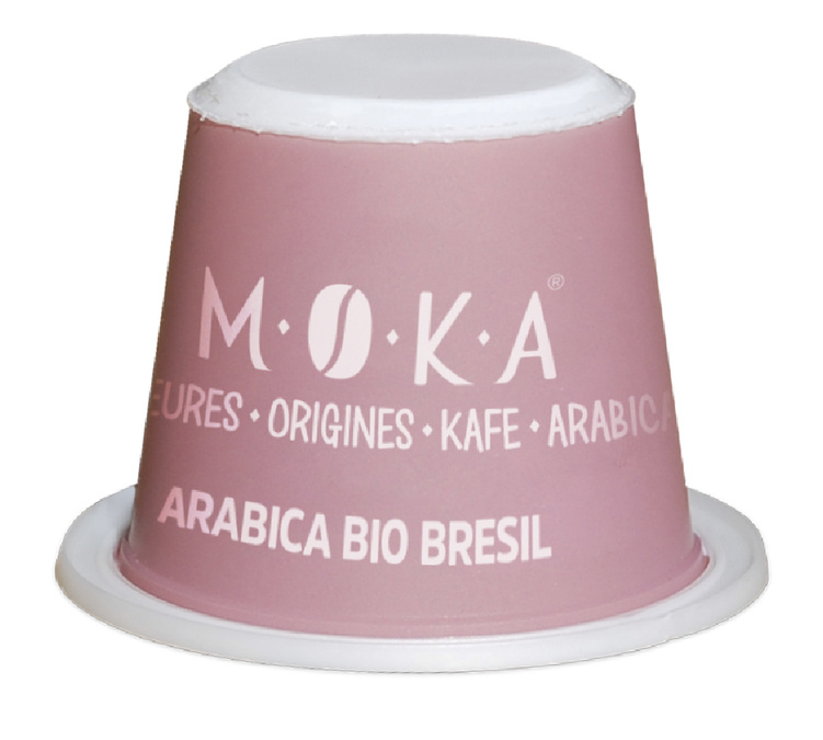 MOKA "Mexique" organic and biodegradable capsules for Nespresso* Original machines. For a strong espresso with delicate fruity notes. Pure origin organic coffee from Mexico. 100 % Arabica. The MOKA capsules are vegetal : they are made of corn starch with no aluminium at all. Biodegradable within 3 months. 1 box of 10 capsules.