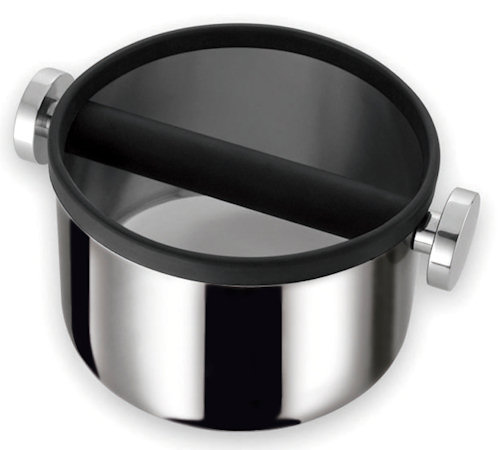 - Made of stainless steel, this knock box from ILSA is particularly robust. With anti-slip coated base. The knock tube and edges of the box are also coated.