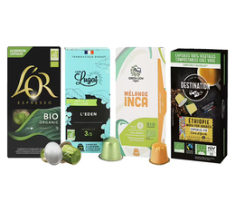 Try our Organic Pack : 40 Nespresso* Original-compatible capsules from some of our best brands: Destination, Cap'Mundo, Miscela d'Oro and Cafés Lugat. Exclusive MaxiCoffee offer !