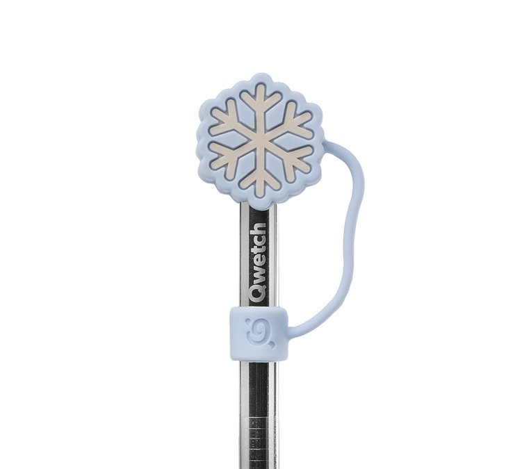 You'll love this winter design from Qwetch! The famous insulated bottle brand has designed a pastel blue snowflake-shaped silicone cap to protect the stainless steel straw tips. This cap is compatible with all of the brand's travel cups.