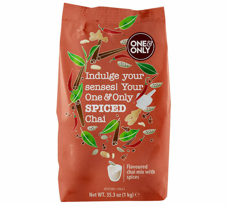 Add 45 g of 'Spiced Chai' One and Only powder to 330 ml of cold or hot milk and mix until smooth.
