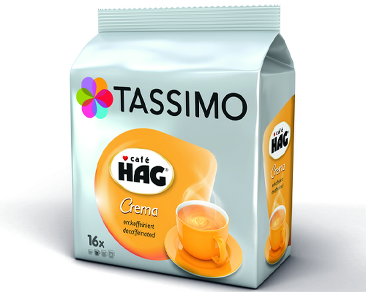 With Tassimo’s Intellibrew™ technology, each T-Disc is automatically recognised by your machine, which adjusts the brewing time, temperature and volume for a perfect extraction. The result is a creamy, balanced and consistently delicious coffee, cup after cup. With 16 pods per pack, Café Hag Crema Decaffeinated is an excellent choice for those seeking a light yet flavourful alternative, without giving up the pleasure of a true crema coffee.