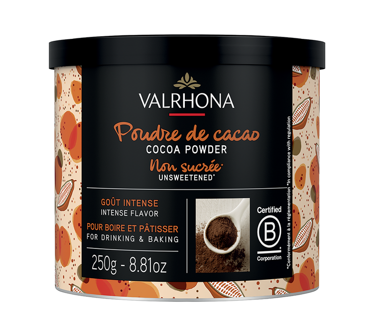 Enjoy a moment of indulgence with a cup of hot chocolate with Valrhona cocoa powder. This powder contains 93% cocoa for an intense drink. When preparing your favourite recipes, you can use Valrhona cocoa powder, which contains no sugar for a rich flavour in your preparations.