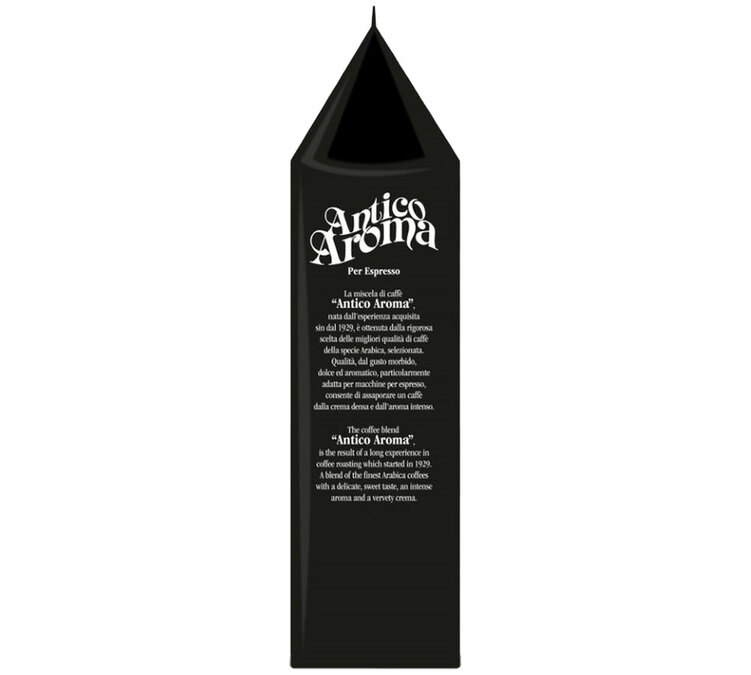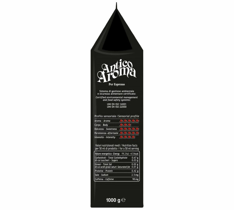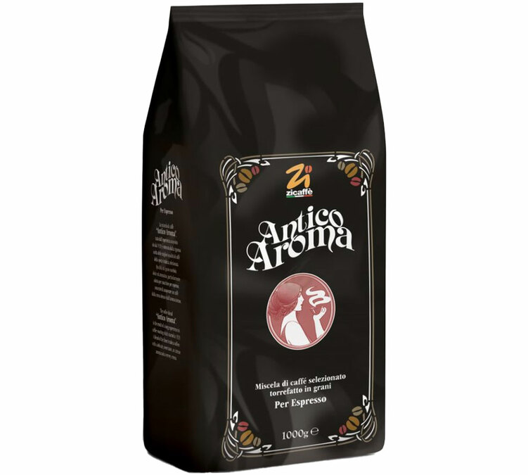 'Antico Aroma' by Zicaffè is a blend of Arabica and Robusta, delivering a really intense, very strong coffee with gourmet notes. Roasted in Italy. Best enjoyed as an espresso. 1kg coffee beans.