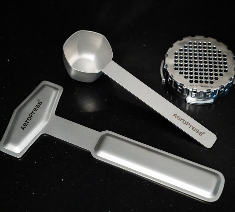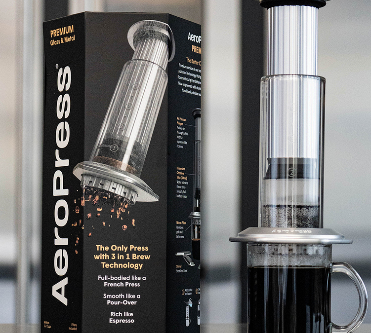 Discover the Aeropress Premium in Silver, made from premium materials: double-walled borosilicate glass, stainless steel and anodised aluminium. A true design object that instantly enhances your coffee bar and adds a touch of elegance to your kitchen.