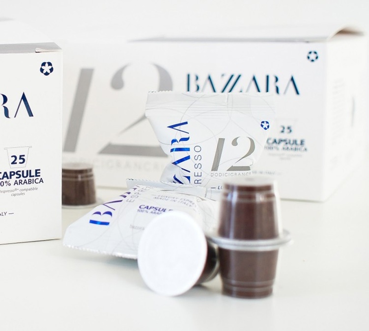 Bazzara Dodicigrancru Nespresso-compatible capsules. A 100% Gran Cru Arabica roasted in Italy that will deliver a strong espresso. 1 box of 25 individually-wrapped capsules.