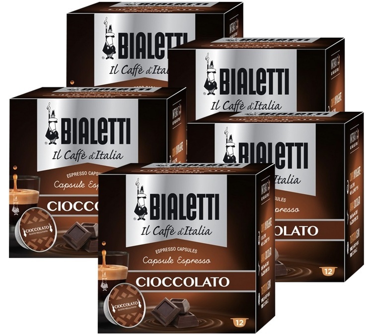 Bialetti Mokespresso Chocolate-flavoured coffee capsules: For a balanced espresso with a nice chocolate taste. 5 boxes of 12 capsules for Bialetti Mokespresso machines.