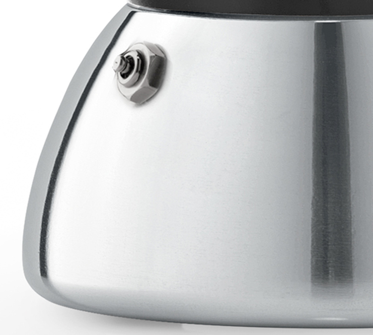 The boiler of the Bialetti moka pot has two layers: a stainless steel exterior that can be used on induction hobs, and an aluminium interior designed for perfect heat diffusion.