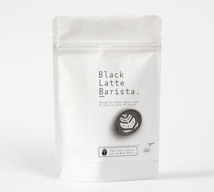 Here is the black latte version by La Fabrique à Latte — a bold creation that combines roasted Japanese Hojicha tea, raw Criollo cacao from Peru, and activated charcoal made from coconut. The result is an intensely dark drink with a rich, rounded flavour and an indulgent depth in every sip.