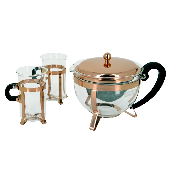 | Bodum Chambord copper tea set with teapot & 2 x 30cl cups - Free tea offer! | |