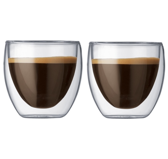 A set of two Pavina double wall glasses for hot drinks by Bodum® - 8cl capacity. Perfect for espressos!