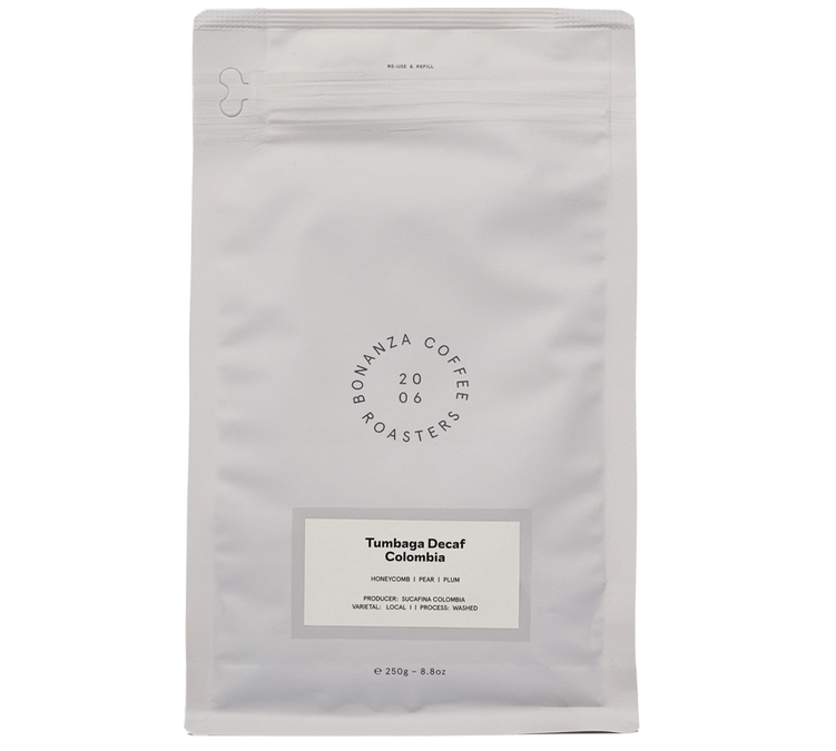 Tumbaga Decaf by Bonanza Coffee is a speciality Colombian coffee bean created to offer a smooth, aromatic cup without compromising on flavour.