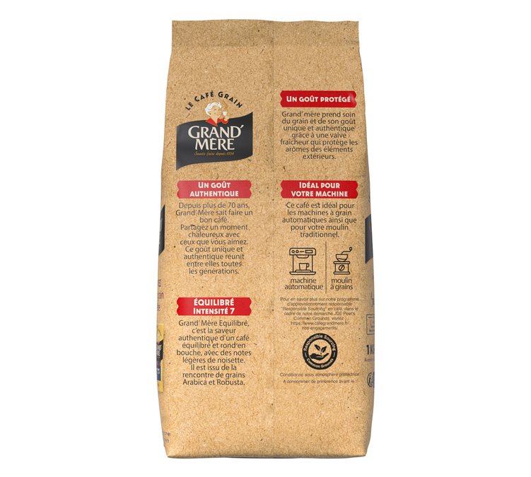 Discover the pleasure of authentic coffee with Grand'Mère 1 kg balanced coffee beans.