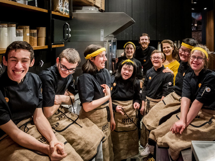 Café Joyeux's mission is to be an inclusive company, and is especially dedicated to serving the disabled community. Café Joyeux hires, trains and accompanies people with disabilities into everyday life and particularly into the work place. Whether in the cafés or in the selection and roasting process of the coffees, Café Joyeux promotes a better integration of the disabled community.