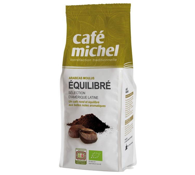 Café Michel Equilibré organic ground coffee: a balanced blend of Arabicas from Mexico, Guatemala, Peru & Bolivia. Organic coffee, certified Fairtrade (SPP label). You'll have a well-rounded gourmet cup of coffee, ideal for breakfast. 250g ground coffee
