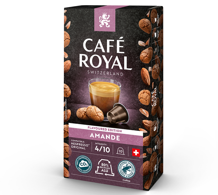 Café Royal is a well-known Swiss brand of coffee that manufactures a wide range of products : from Nespresso® compatible capsules to Dolce Gusto® compatible pods, as well as coffee beans, ground coffee, instant coffee and even tea.