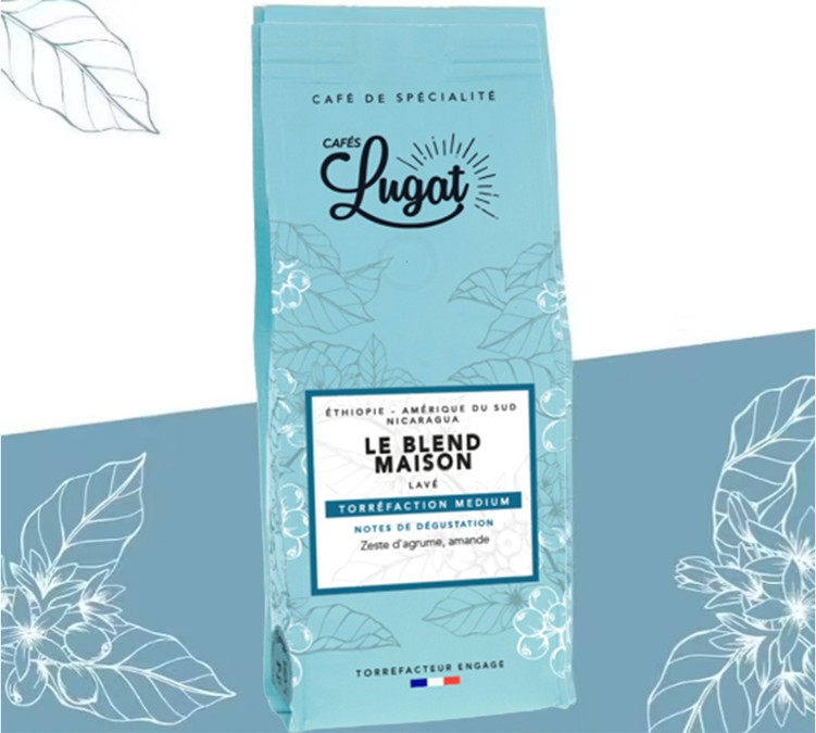 "Le Blend Maison" by Cafés Lugat is a blend of quality Arabica from Ethiopia, Nicaragua and Colombia. For a balanced coffee with citrus notes, fresh and intense. 250g pack of ground coffee for Filter coffee makers.