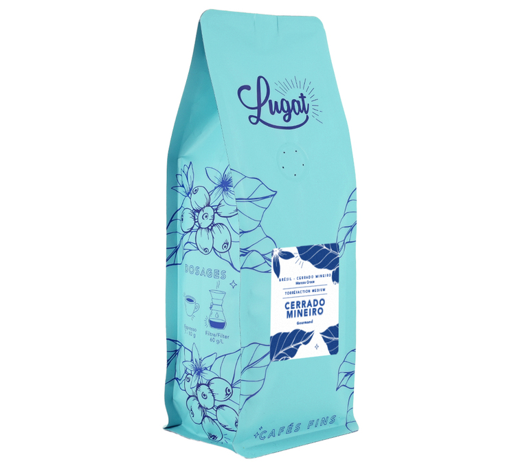 To bring you these coffee beans from Brazil's Cerrado Mineiro, Cafés Lugat has worked with Inácio Carlos Urban, the owner of plantations in the heart of the Cerrado Mineiro region. His farms grow prestigious varieties such as Mundo Nuovo and Yellow Catuaí, planted at an altitude of 1150m. These exceptional varieties make up this unique terroir coffee. In this privileged environment of sun-drenched hills and plateaux, the coffee cherries ripen slowly until they are perfectly ripe. They are then carefully treated using a natural process that guarantees batches of impeccable quality.