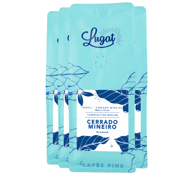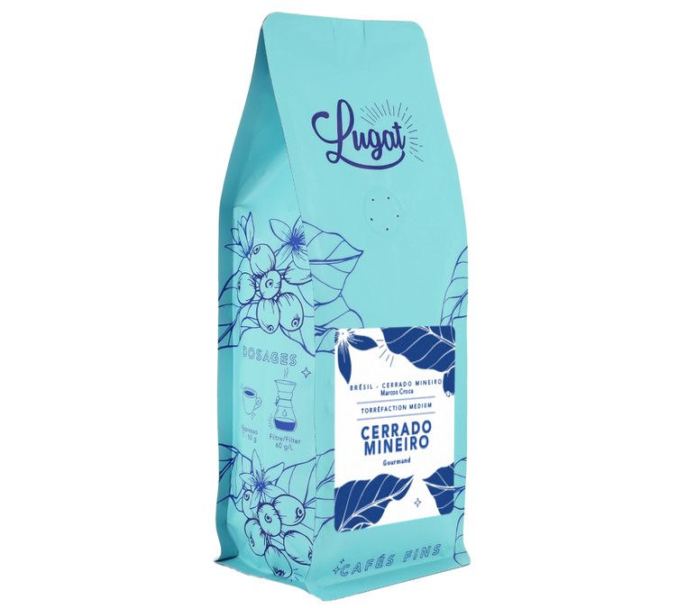 To bring you these coffee beans from Brazil's Cerrado Mineiro, Cafés Lugat has worked with Inácio Carlos Urban, the owner of plantations in the heart of the Cerrado Mineiro region. His farms grow prestigious varieties such as Mundo Nuovo and Yellow Catuaí, planted at an altitude of 1150m. These exceptional varieties make up this unique terroir coffee. In this privileged environment of sun-drenched hills and plateaux, the coffee cherries ripen slowly until they are perfectly ripe. They are then carefully treated using a natural process that guarantees batches of impeccable quality.