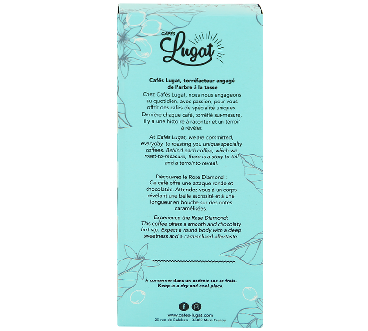 Enjoy these Nespresso* Original Rose Diamond compatible capsules from Cafés Lugat. This round and tasty blend, from Brazil, with freshness and quality as its leitmotiv! Packaged in a box of 10 capsules, 100% aluminium for optimal quality. Capsules compatible with Nespresso* Original machines
